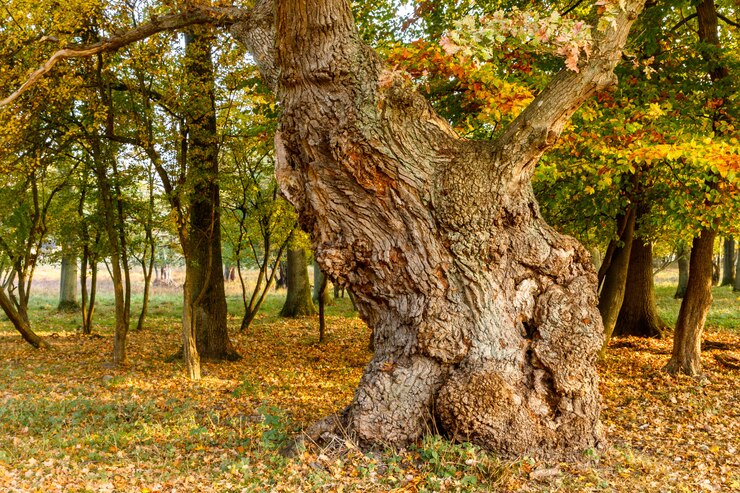 frente a un viejo árbol